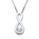 The Pre-Owned Jared 1/20 ct Diamonds in Rhythm Necklace in Sterling Silver is a stunning piece that makes the perfect gift for someone special, including yourself. Featuring a unique twist design with a round statement diamond, this high polish necklace measures 18 inches.