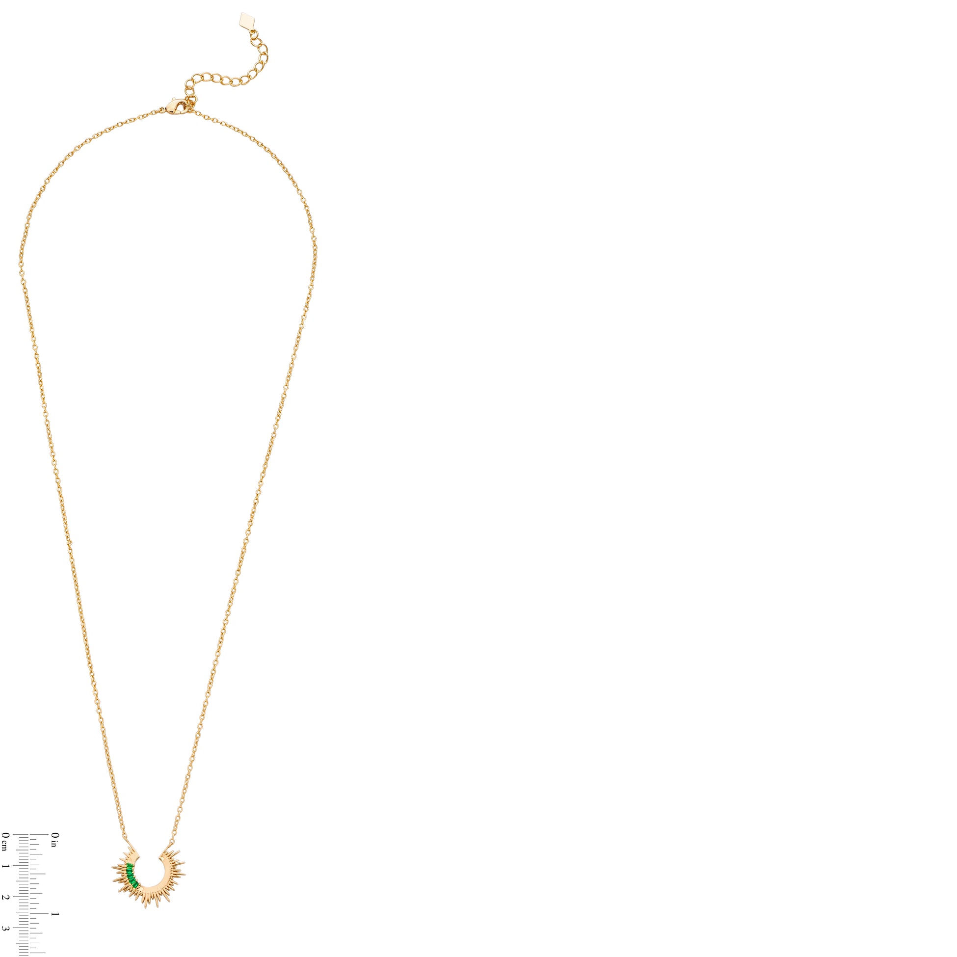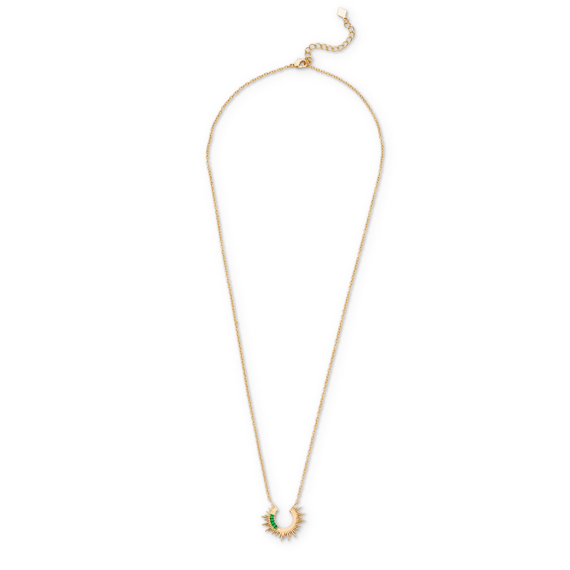 We worked with Joy Dravecky to create an emerald CZ version of the best-selling Sunset Voyage Necklace. Featuring marquis CZ and a crescent shape, the Sunset Voyage Necklace is inspired by the rays of the sun.