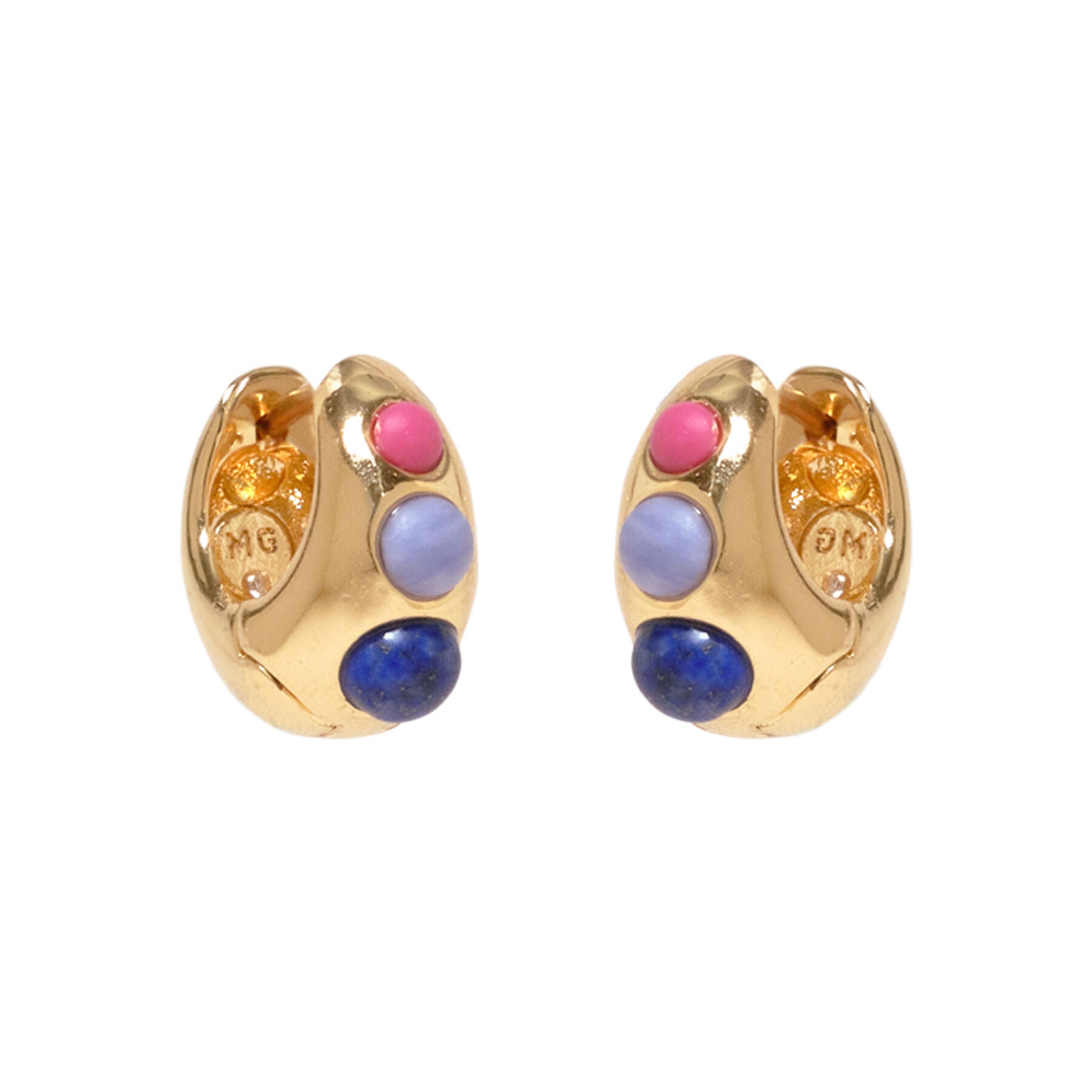 Our tiniest hoop this season, and an update to our Petra, these hoops are comprised of multicolored stones - Semi-Precious Pink Agate, Blue Lace Agate, Lapis, Orange Aventurine, Howlite, and Amazonite, reminiscent of all the colors of vases and pottery of Marrakesh.