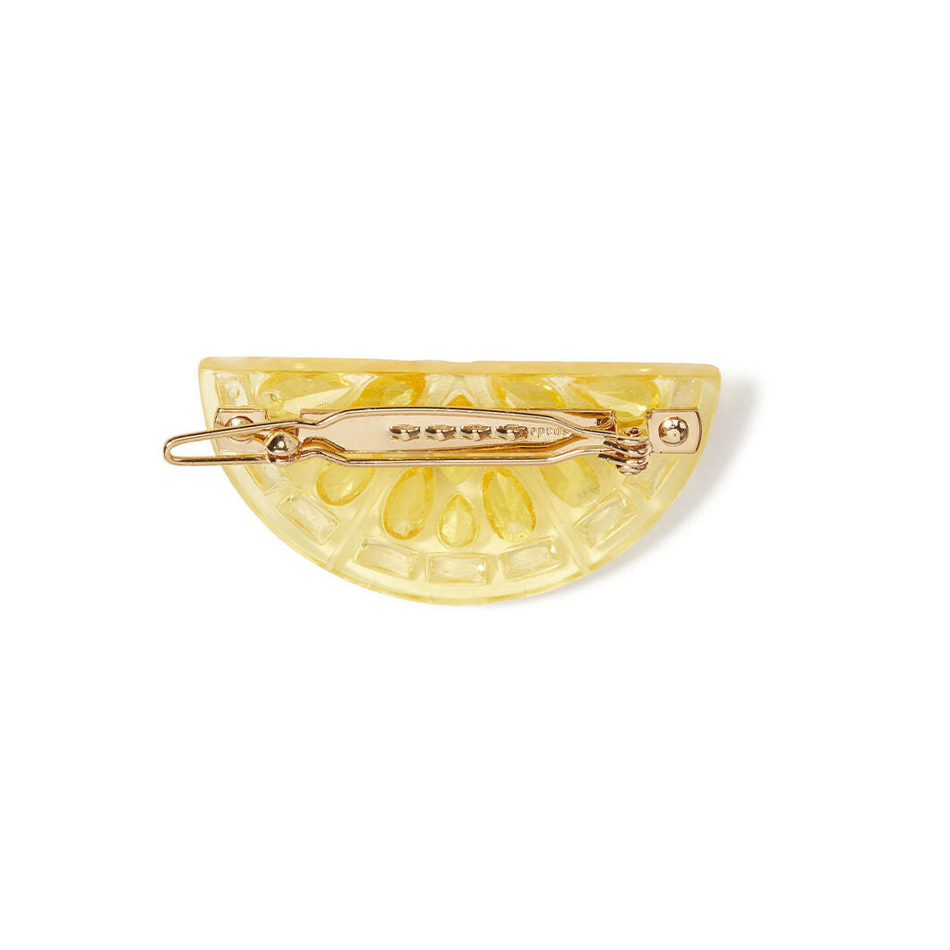 The Fresh Squeeze Barrette is a hair clip made of 18k gold-plating, measuring . Embrace the fresh and fun summer vibes of the Fresh Squeeze Barrette, suitable for various hairstyles and occasions.