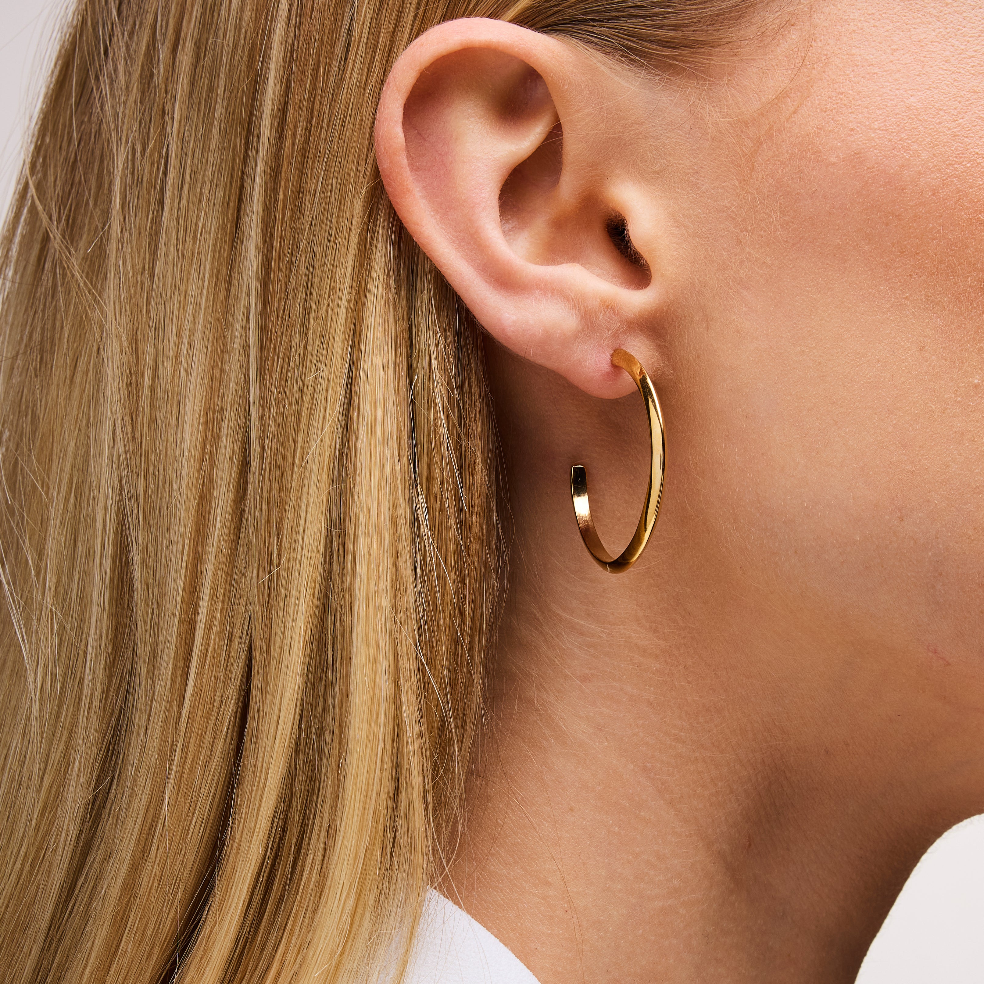 A cut above. These gold geometric hoops feature a knife-edge design for everyday style that’s far from ordinary.