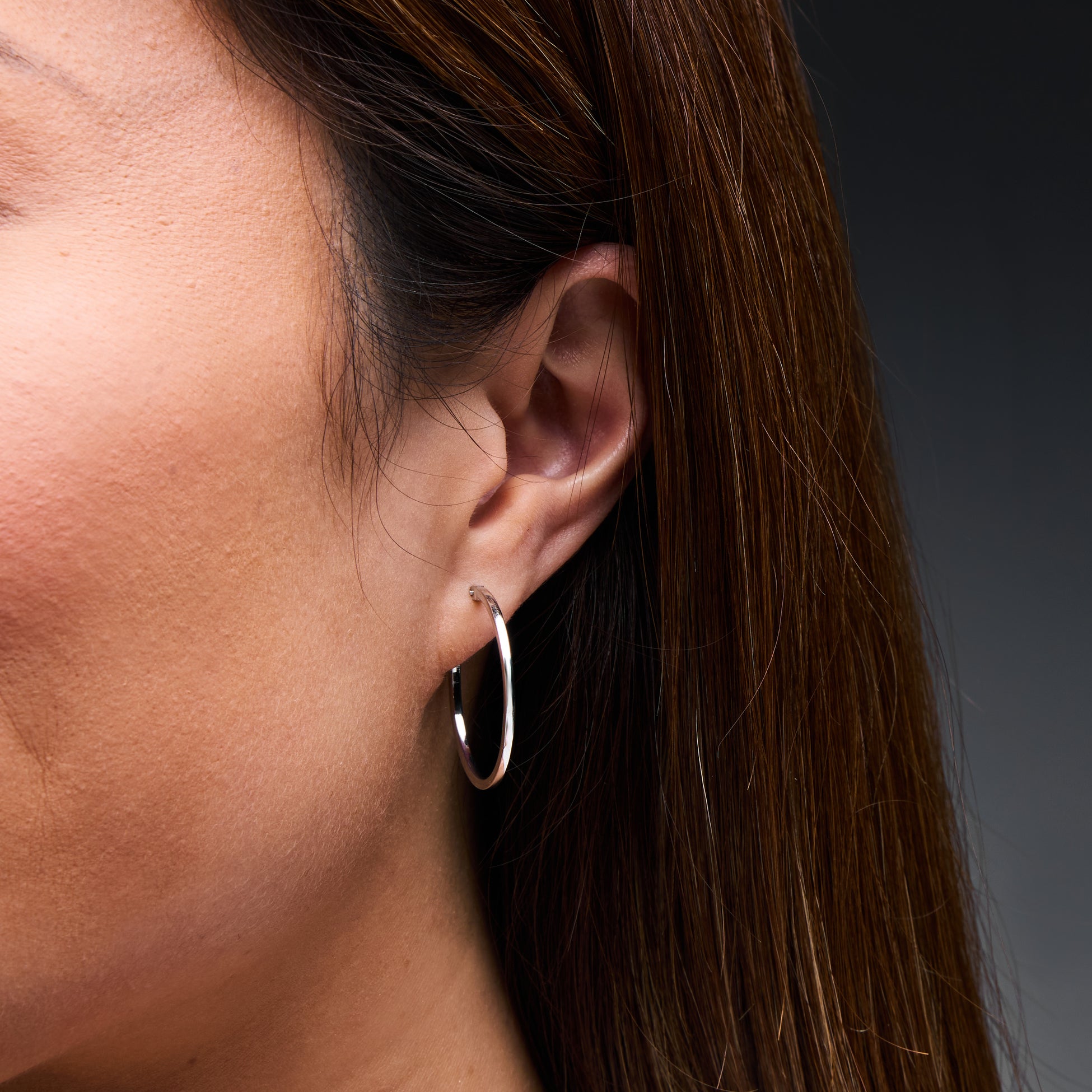 A bold-but-refined staple, these solid 10K white gold hoops strike the perfect balance of size, shine, and sophistication.