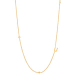 This 18K gold-plated Sideways Initial Necklace with CZ accents is the perfect addition to any wardrobe. Making a statement with its subtle sparkle, this dainty necklace can be personalized with an initial of your choice.