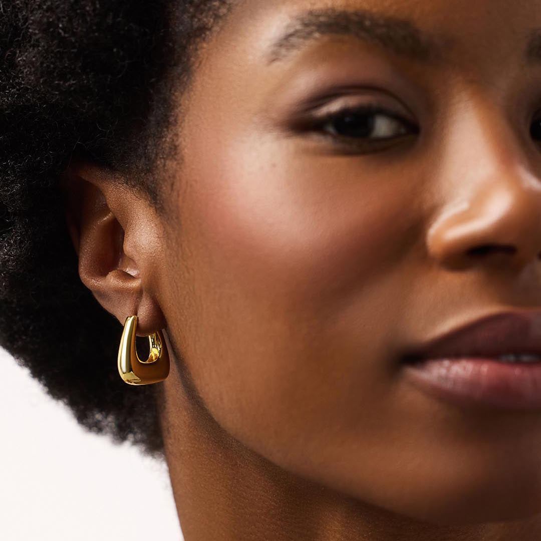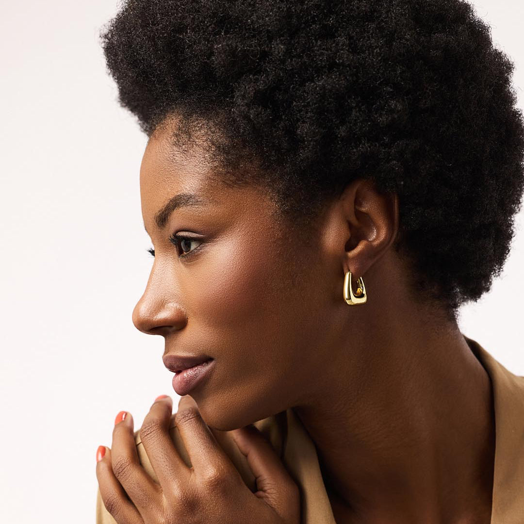 Bold but never bulky. The Colene Hoops bring sculptural energy to your ear game. They dress up a white tee or keep up with a blazer—your call.
