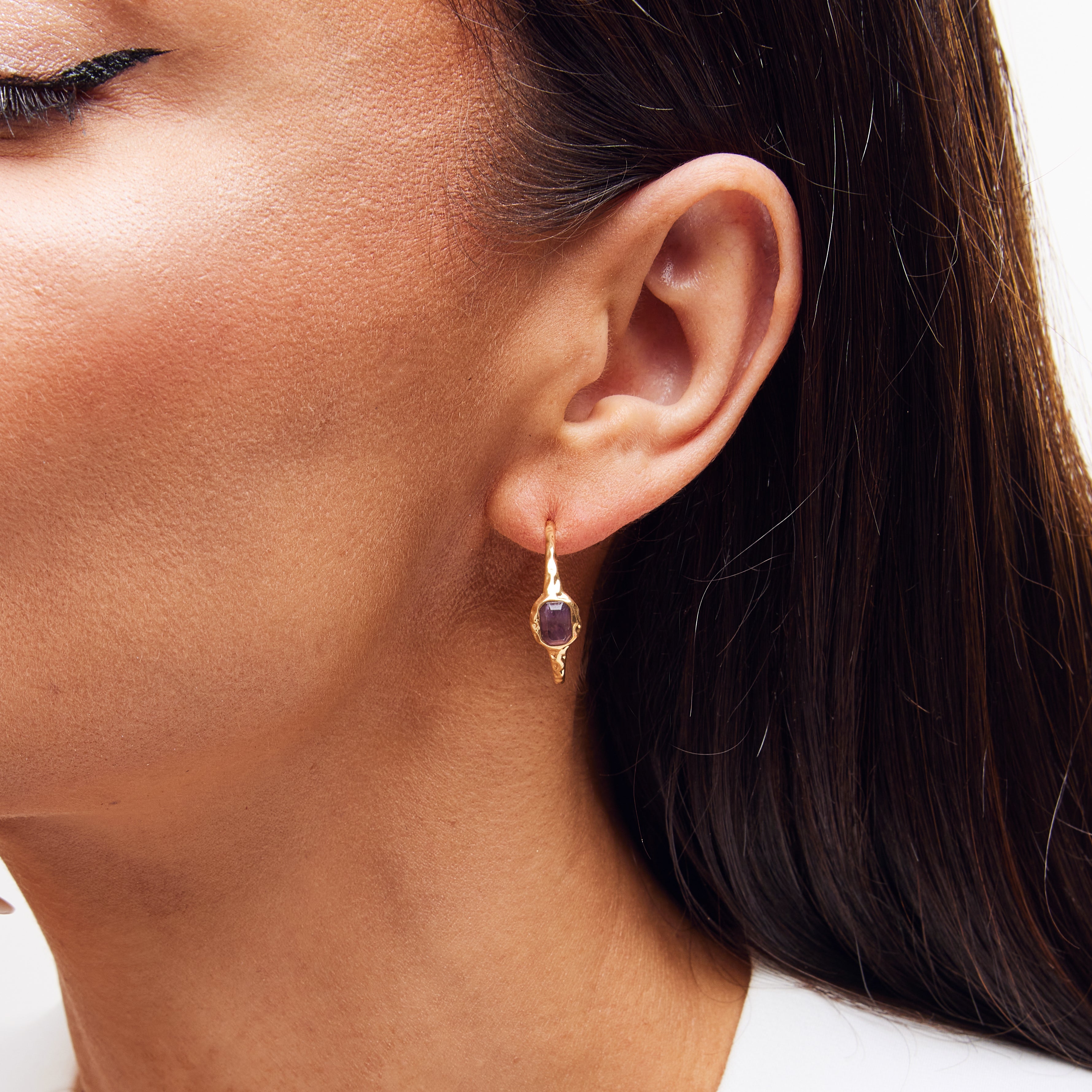 Small in size but big on impact, these hammered gold hoops bring together texture and a pop of color with an Amethyst accent. Made with recycled materials, they’re a conscious choice for your jewelry box.