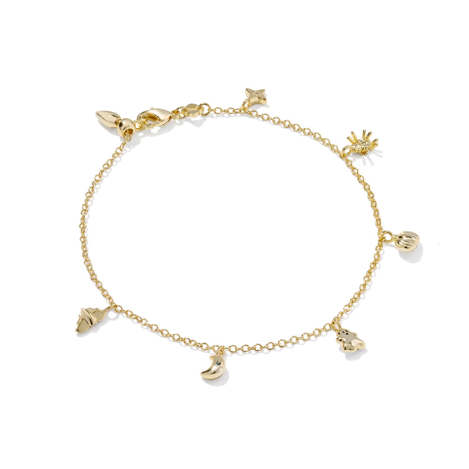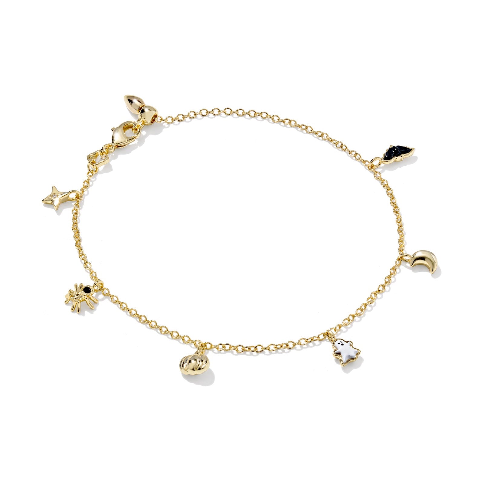 This gold-plated chain bracelet features a playful mix of Halloween-inspired charms and colorful accents. Lightweight and festive, it’s a subtle way to celebrate spooky season in style.