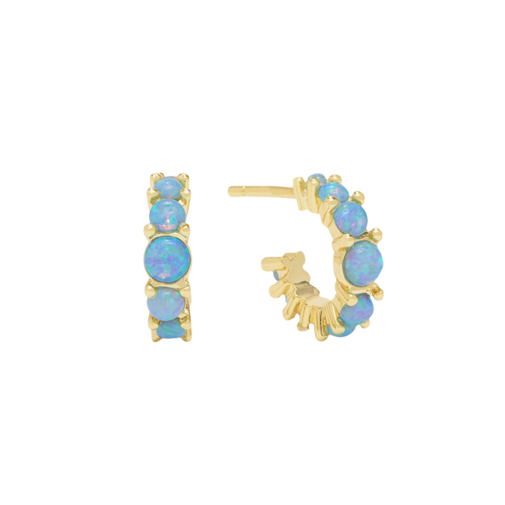 These huggies bring any ear party to life. Bright, graduated stones add a colorful pop to a neutral look or go monochrome with matching blue styles.