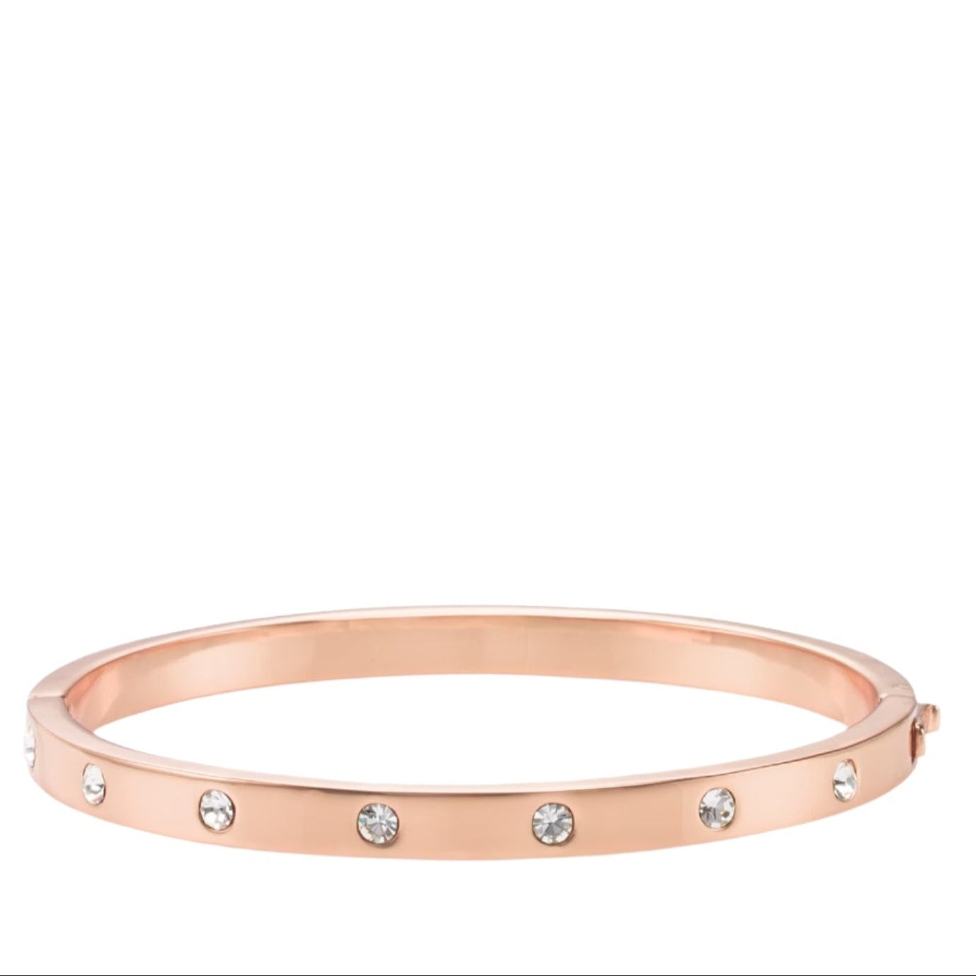 Set Stone Hinged Bangle in 18k Rose Gold Plating & Clear