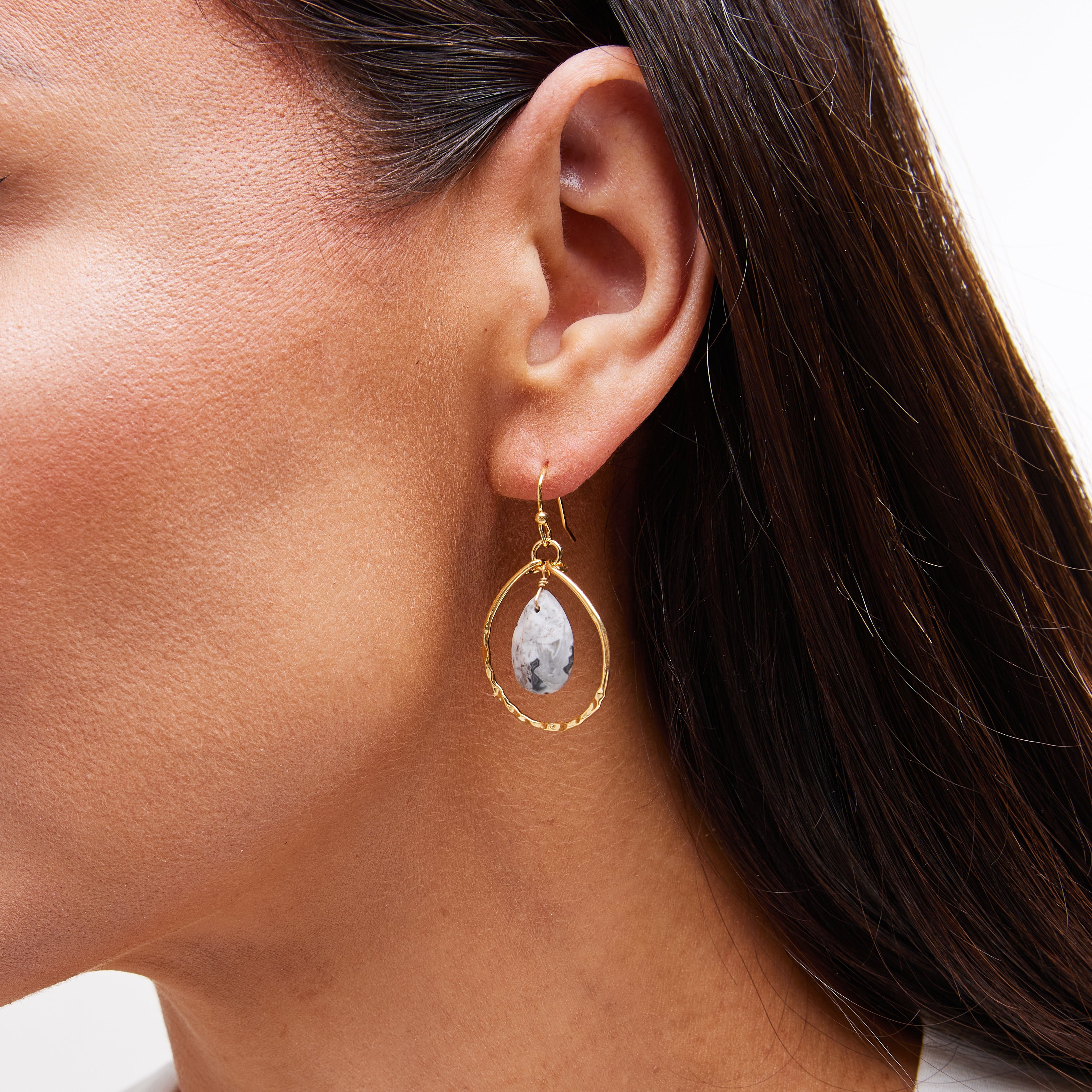 Embrace the earthy elegance of Picasso Jasper with these artfully crafted drop earrings, each stone bringing a unique natural pattern. Designed with a conscious touch, these earrings are part of Rocksbox's collection made with recycled materials.