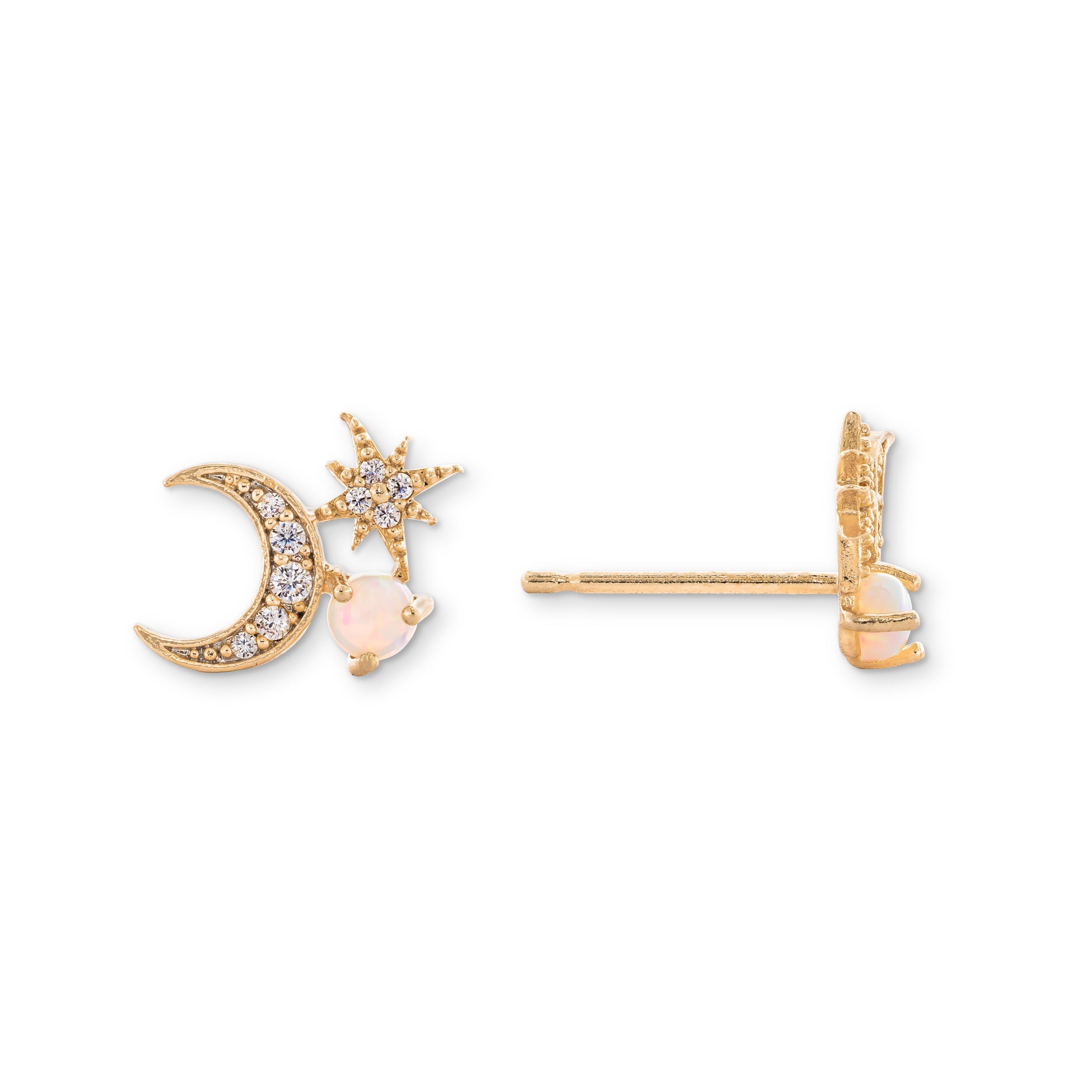 Shoot for the stars with the Stella Starburst Moon Opal Studs, perfect for those who want a little magic in their ear game.
