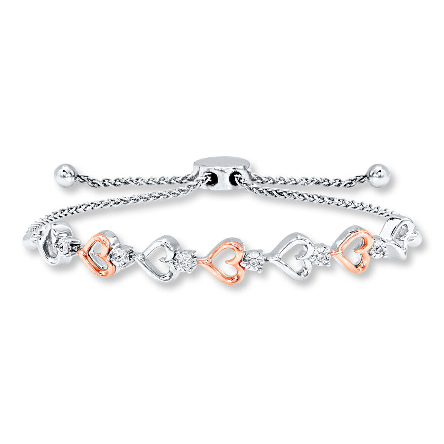 Pre-Owned Kay 1/20ct tw Diamond Bolo Bracelet in Sterling Silver & 10K Rose Gold