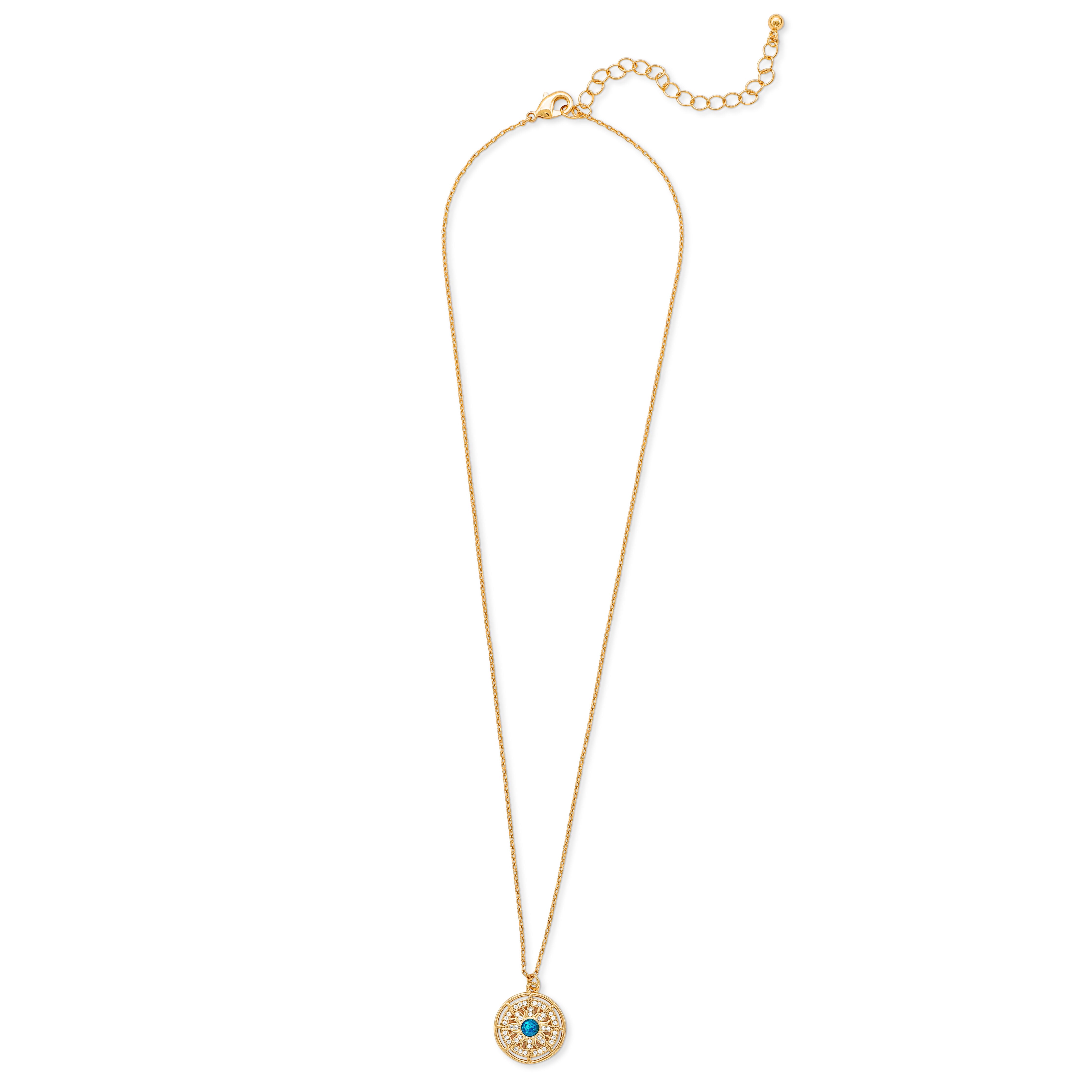 Illuminate your neckline with Rocksbox's sparkling Cassiopeia Sun Necklace. This collar necklace is made of high polish, 14k gold-plating with simulated opal and cubic zirconia, and measures 18" with a 3" extender.