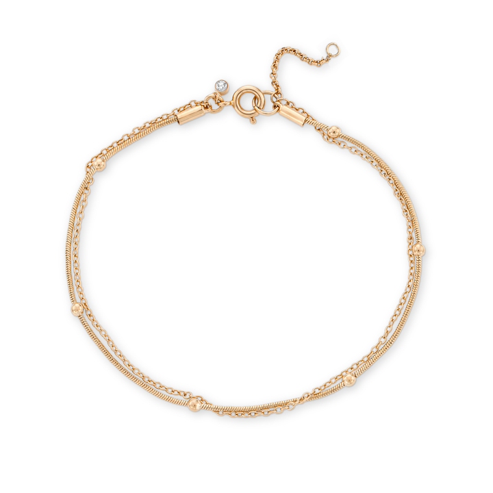 Built-in layering? Yes, please. This dainty anklet brings texture and polish with its dual-chain design and water-resistant IP 10K gold plating. Just add sandals.
