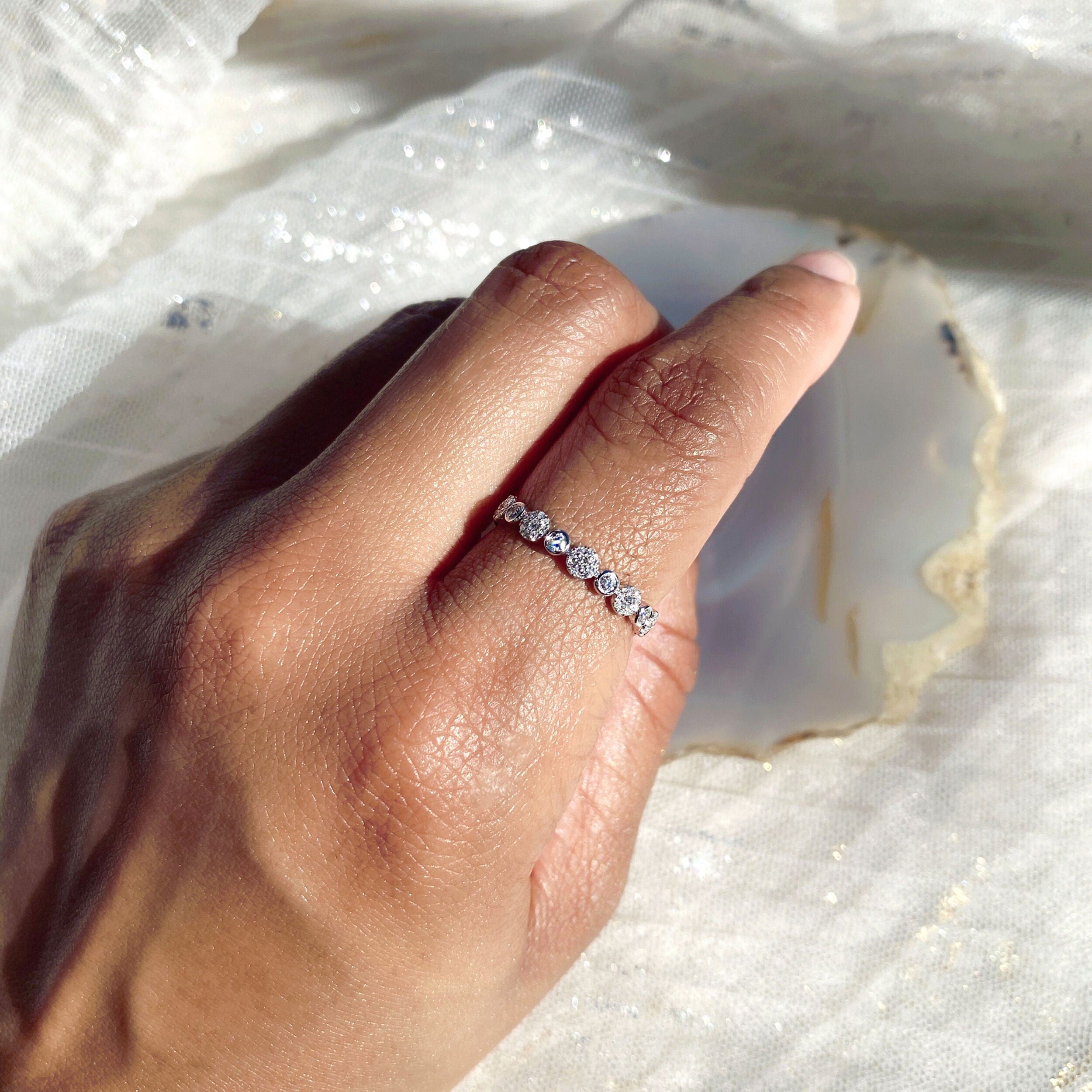 The Pre-Owned Jared 1/5ct Diamond Band Ring in 14k White Gold is even more elegant than your classic eternity band. Featuring real diamonds set in 14k white gold bezels of varying sizes, this ring is part of the Pre-Owned Luxury by Rocksbox fine jewelry collection.