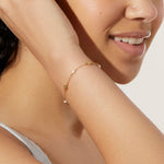 This flower bracelet is the perfect transitional piece from spring to summer. Designed by Hannah, this dainty 14K gold-dipped bracelet features delicate flowers and freshwater pearls, so it pays homage to both spring blooms and summer beaches.