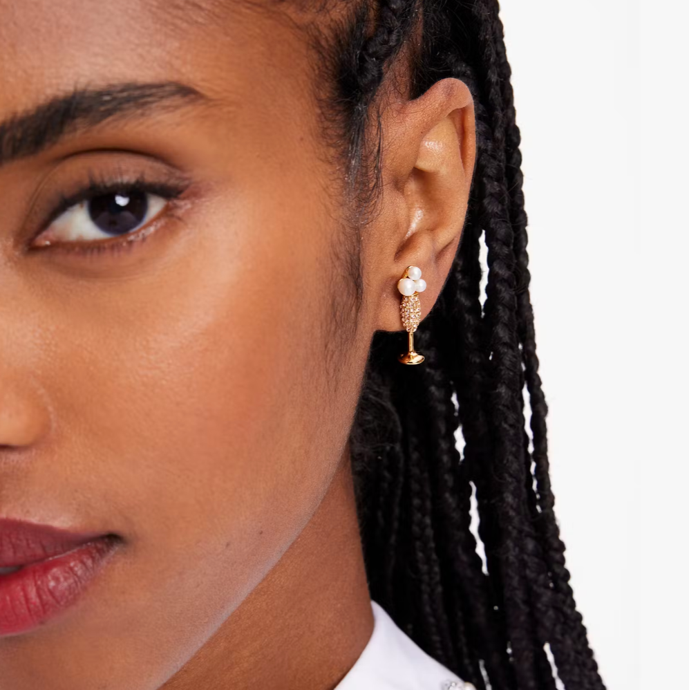 Pop, clink, fizz! Celebrate the occasion with these sparkly studs featuring faux pearl and crystals.