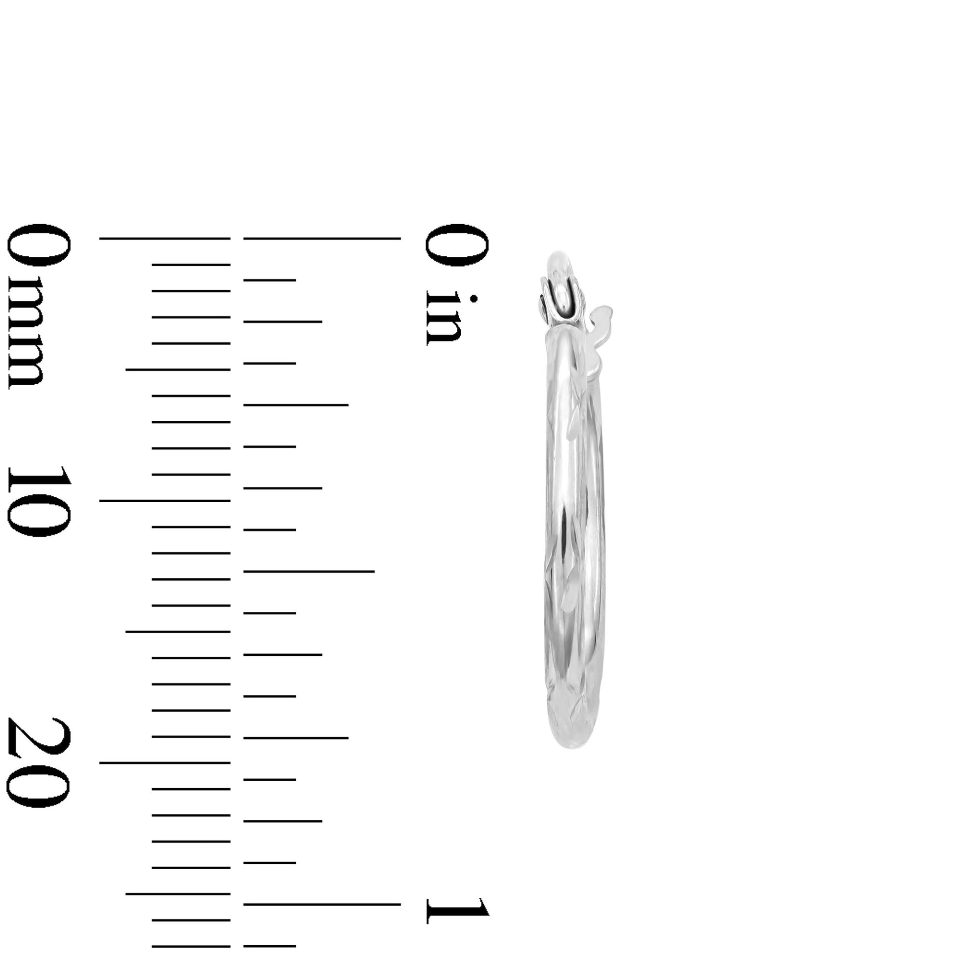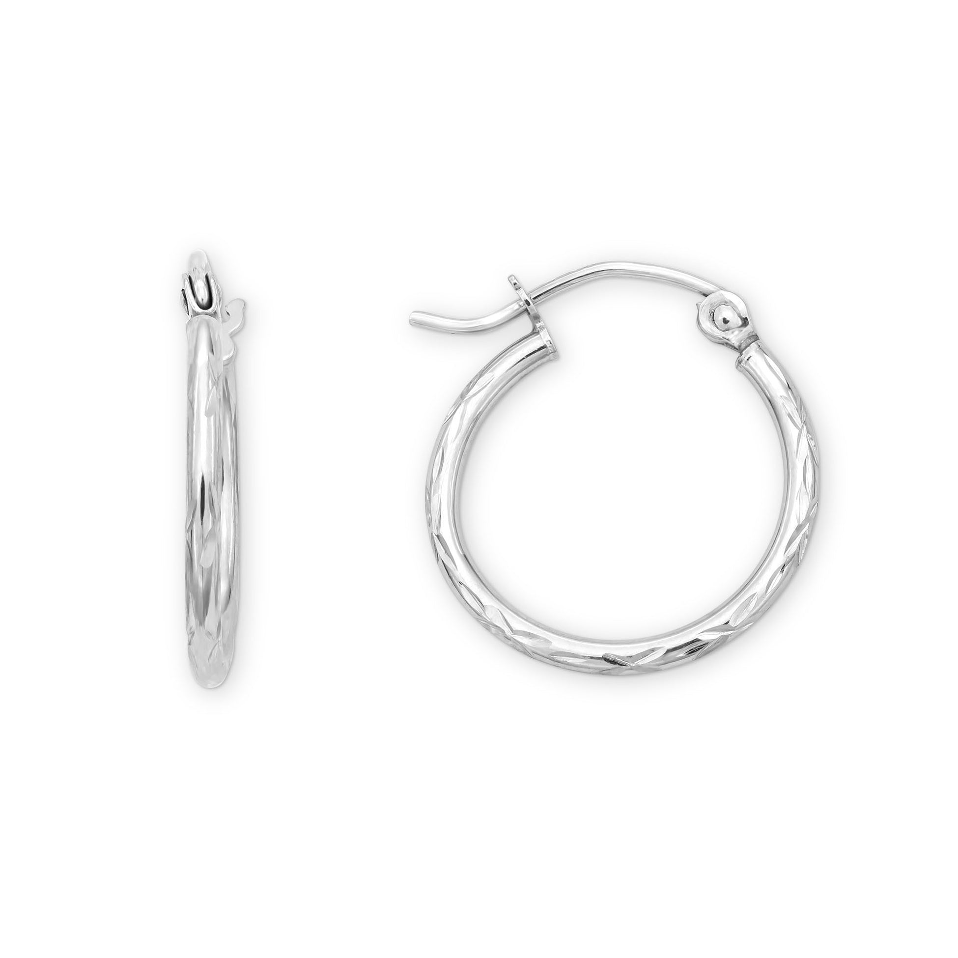 A subtle twist on the classic. The textured finish adds quiet dimension to these wear-anywhere solid 10K white gold hoops.