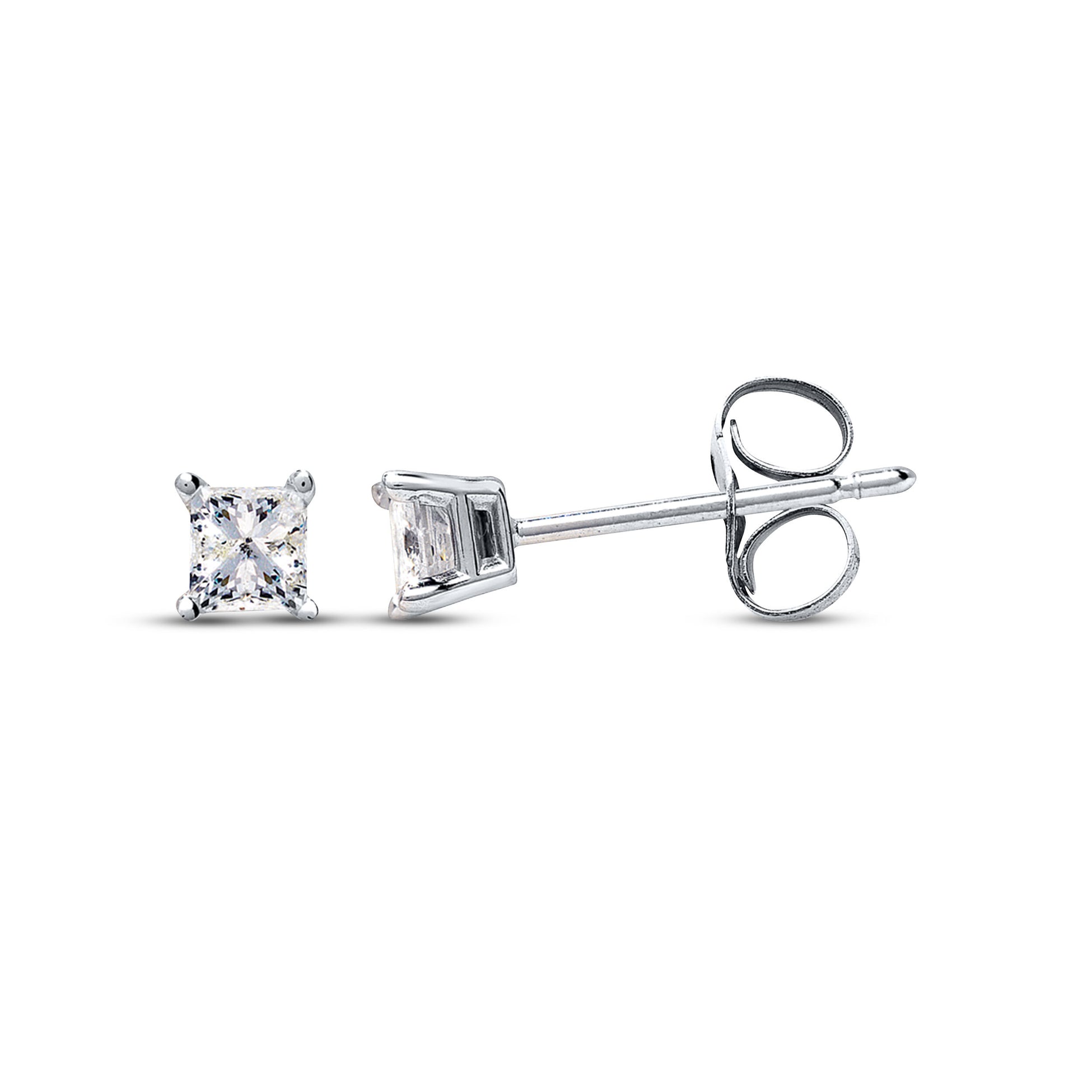 The Pre-Owned Kay 1/4ct Princess-cut Diamond Earrings in 14k White Gold are a stunning pair that makes the perfect gift for someone special, including yourself. These high polish diamond studs feature a modern yet classic design and measure 3.55 mm.