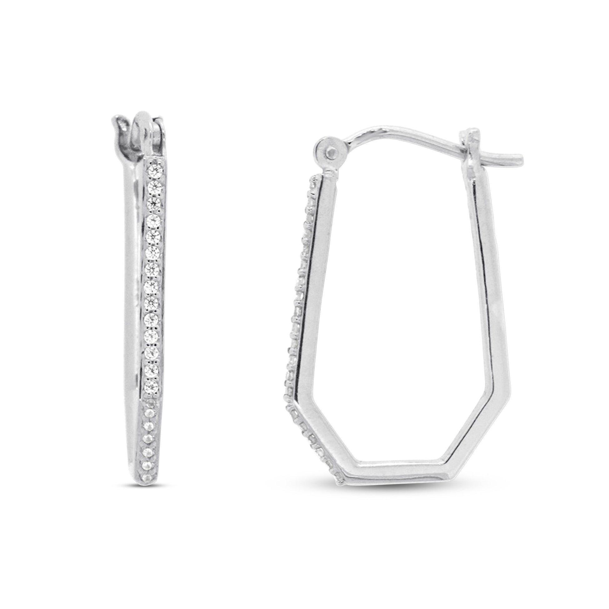 Pre-Owned Kay 1/8ct tw Diamond Geometric Hoop Earrings in Sterling Silver