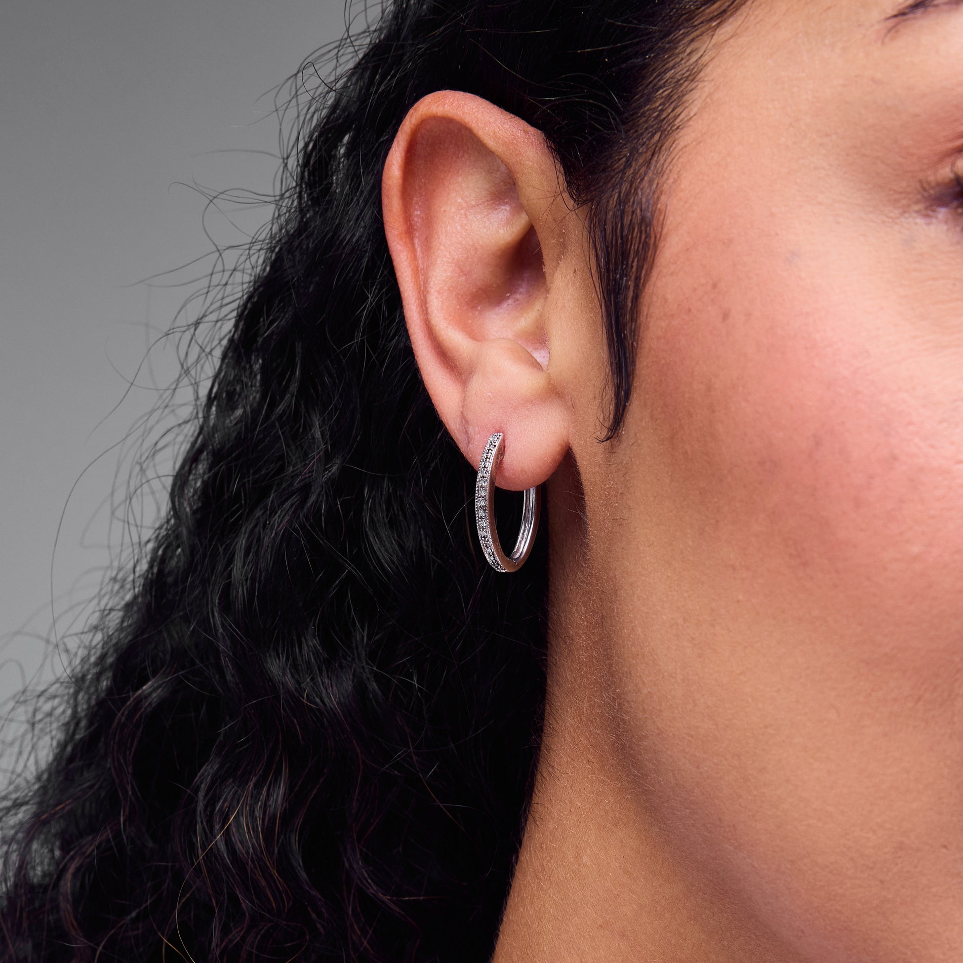 Pre-Owned Kay 1/10ct tw Diamond Hoop Earrings in Sterling Silver