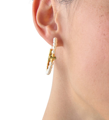 Pre-Owned Kay 10k White & Yellow Gold 1/20 CT Diamond Ladder Huggies