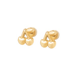 Sweet and subtle, these flat-back cherry studs bring a touch of whimsy to your ear party. Finished in 14k gold plating, they’re comfortable enough to wear all day, every day.