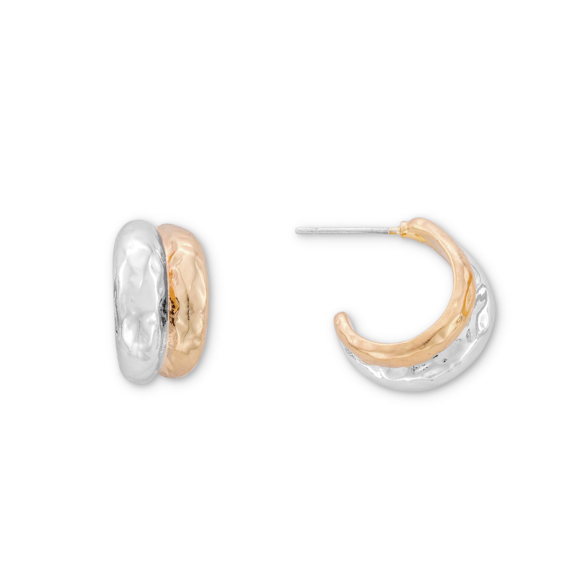 Modern contrast comes to life in these mixed-metal hoops, crafted with 14k gold and silver plating over reclaimed brass. They’re an everyday statement with a cool, curated edge—stack them up or let them shine solo.
