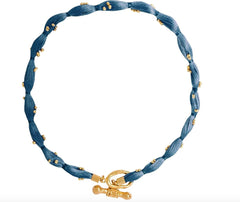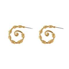 The San Golden Hoops by Pajarolimon feature wrapped cream thread between an intricate knotted design. Made with 24k gold plating over recycled bronze. Handcrafted by artisans in Columbia.