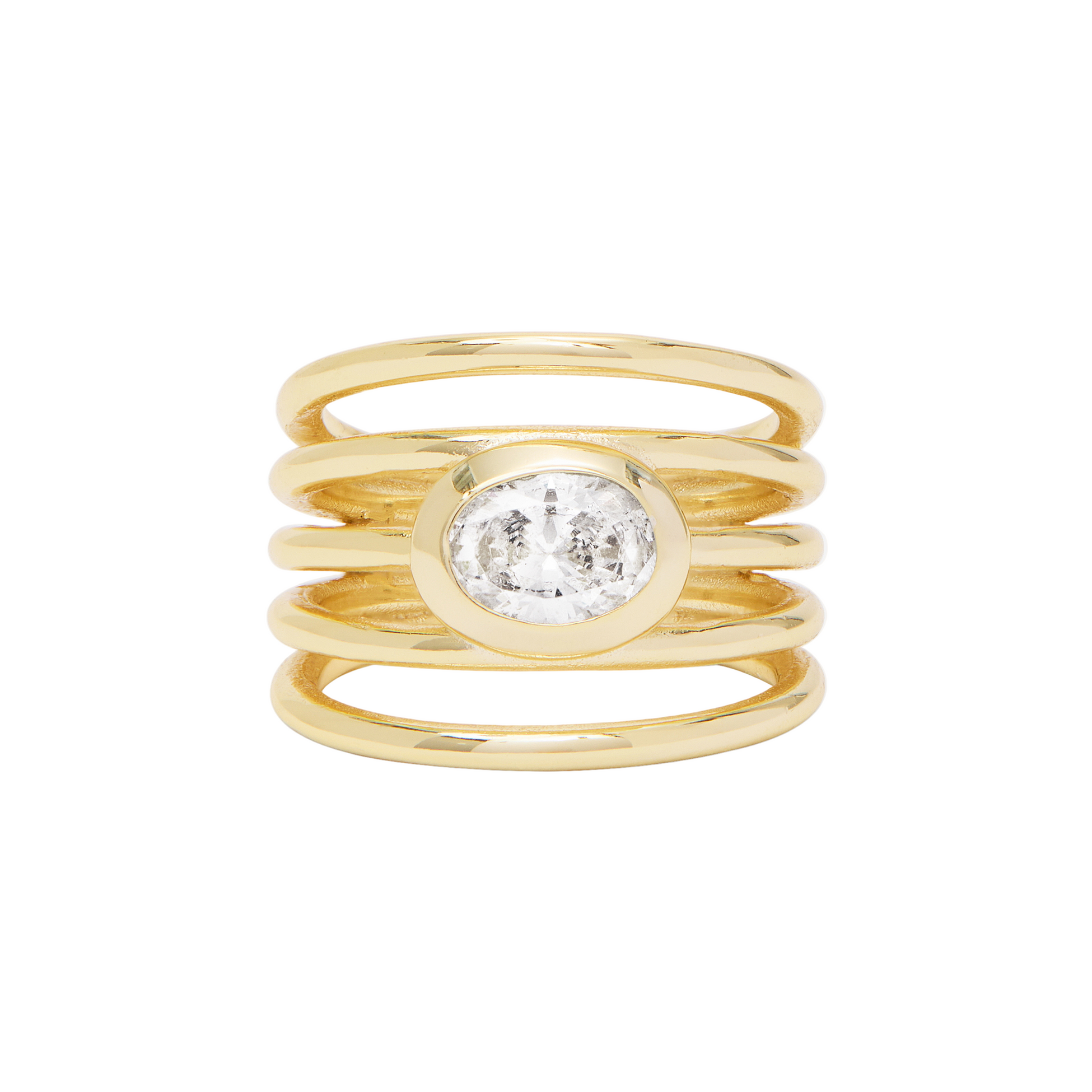 This stacked ring brings sleek lines and eye-catching sparkle together in one undeniably boss look. Bold on its own, striking in a ring party.