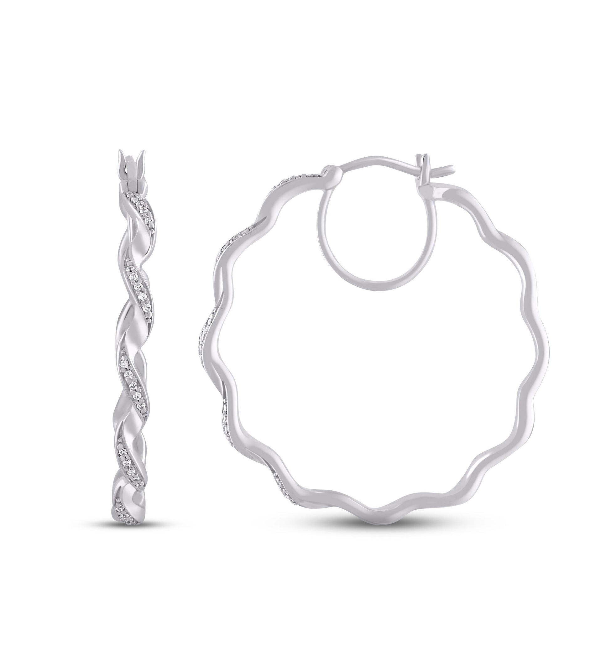 Pre-Owned Kay 1/10ct tw Diamond Squiggle Hoop Earrings