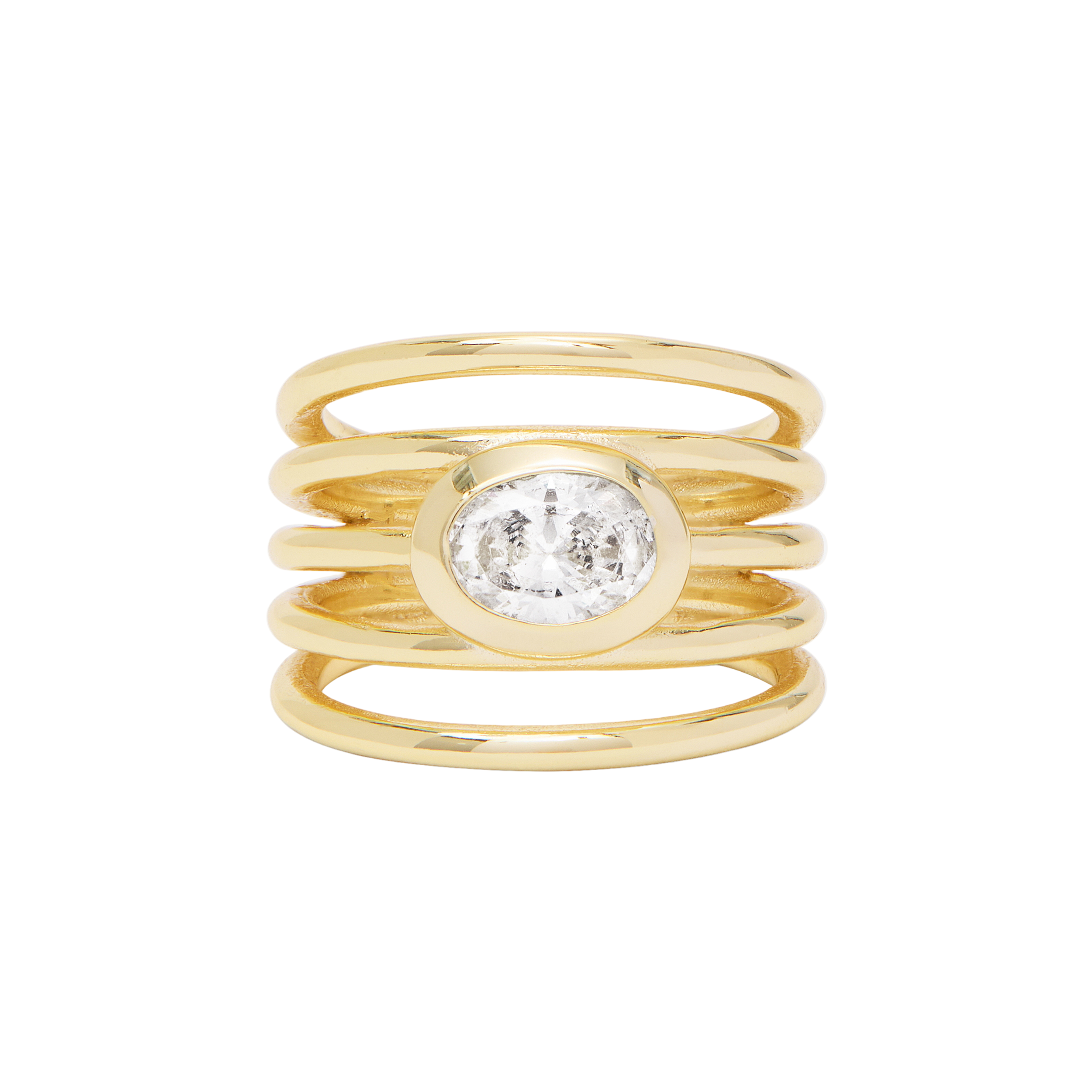 This stacked ring brings sleek lines and eye-catching sparkle together in one undeniably boss look. Bold on its own, striking in a ring party.