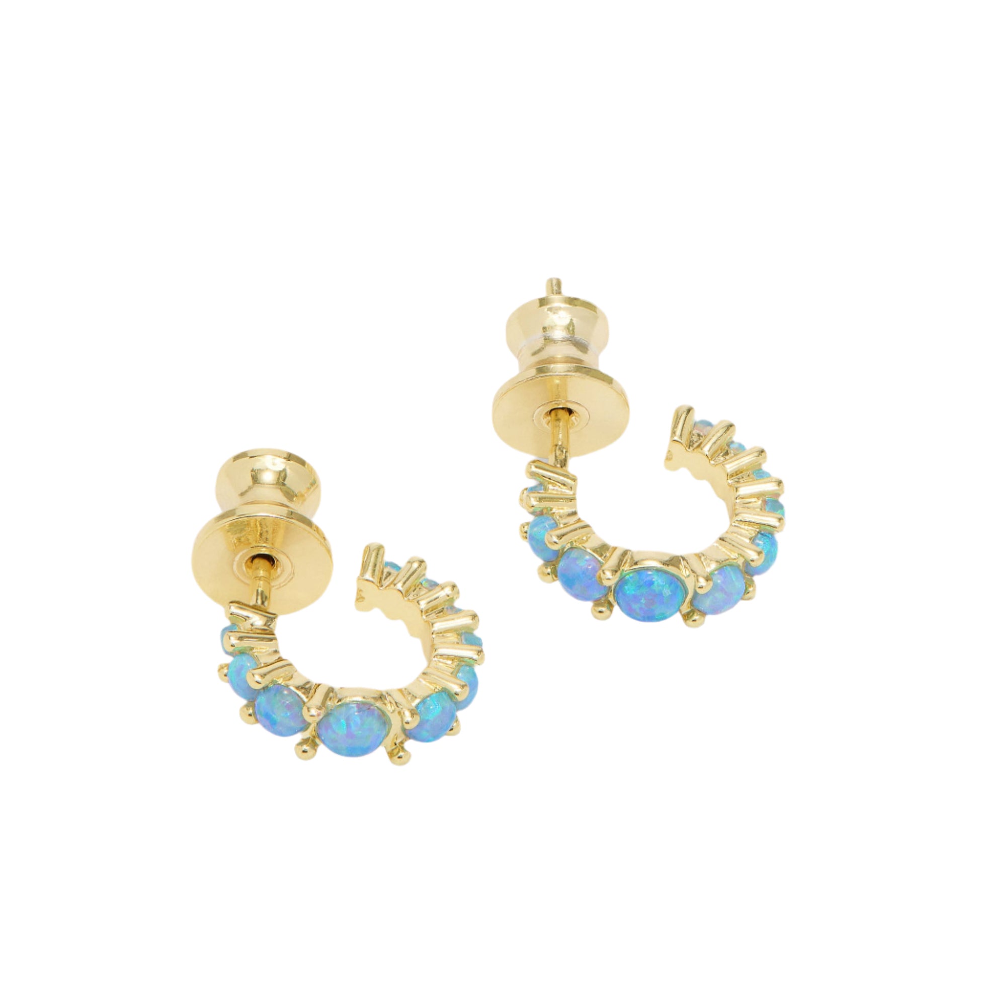 These huggies bring any ear party to life. Bright, graduated stones add a colorful pop to a neutral look or go monochrome with matching blue styles.