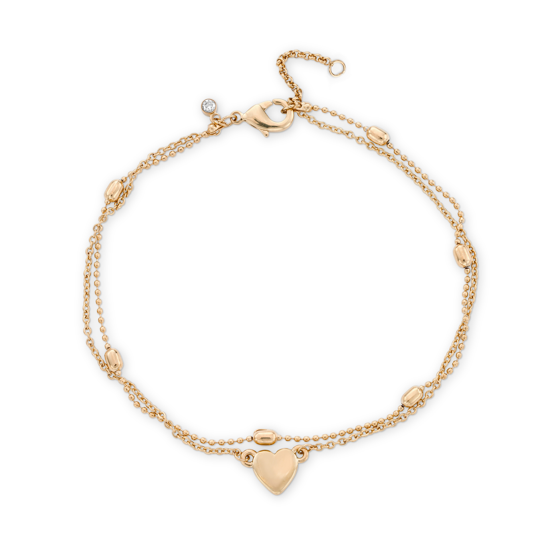 Sweet but subtle. A layered anklet with a heart charm, finished in IP 10K gold plating. Water-resistant and made to pair with everything from sandals to sneakers.