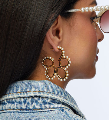 Daisy Pearl Hoop Earrings