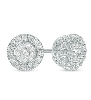 Pre-Owned Zales 10k White Gold 1/4ct tw Round Diamond Halo Studs