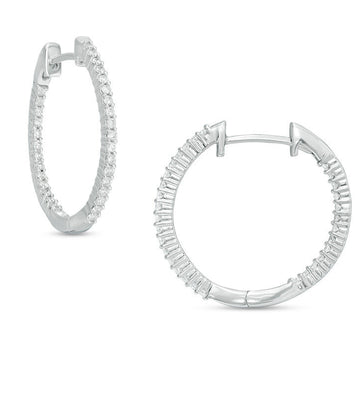 Pre-Owned Zales 10k White Gold 1/2ct Round Diamond Front & Back Pave Hoops