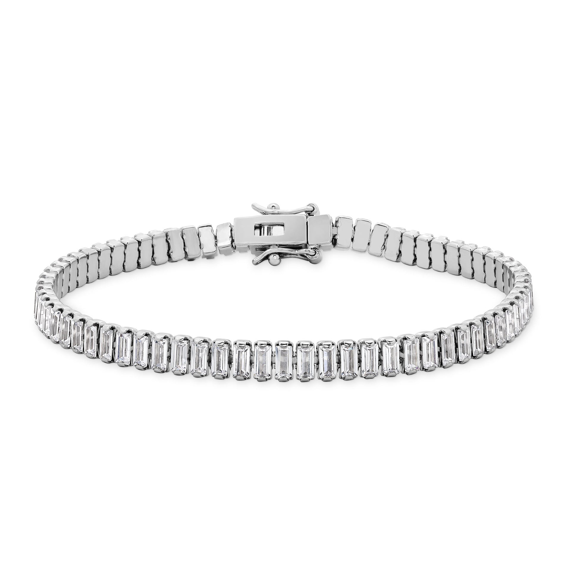 Geometry meets glam. This baguette-cut bracelet channels vintage energy with a modern edge—ideal for nights out or leveling up your weekday uniform.