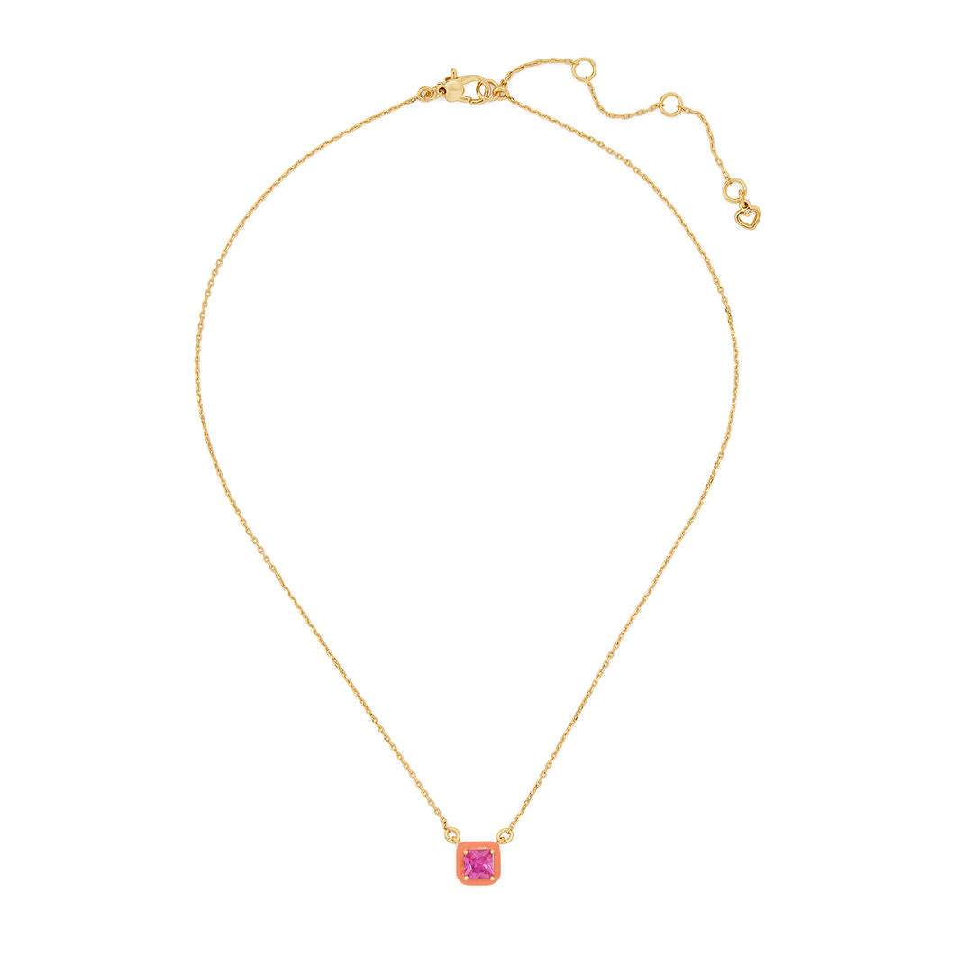 The Brighten Up Pendant in Orange & Pink by kate spade new york is an elevated everyday essential that adds a beautiful pop of color. This necklace is made of high polish, 18k gold plating with a bold enamel pendant and measures 16 inches with up to 3 additional inches.