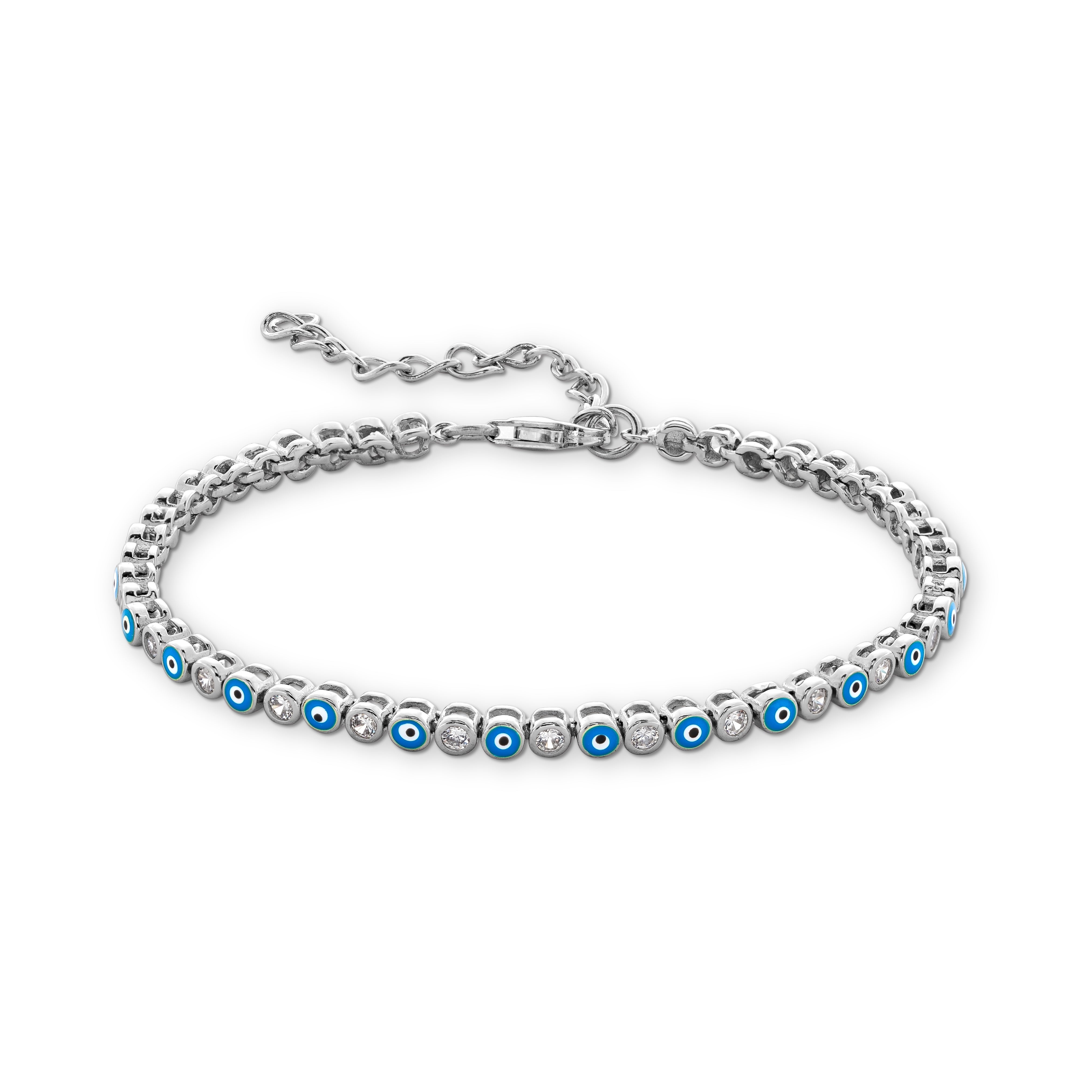 Embarcadero Evil Eye CZ Tennis Bracelet in Blue & Rhodium over Sterling Silver