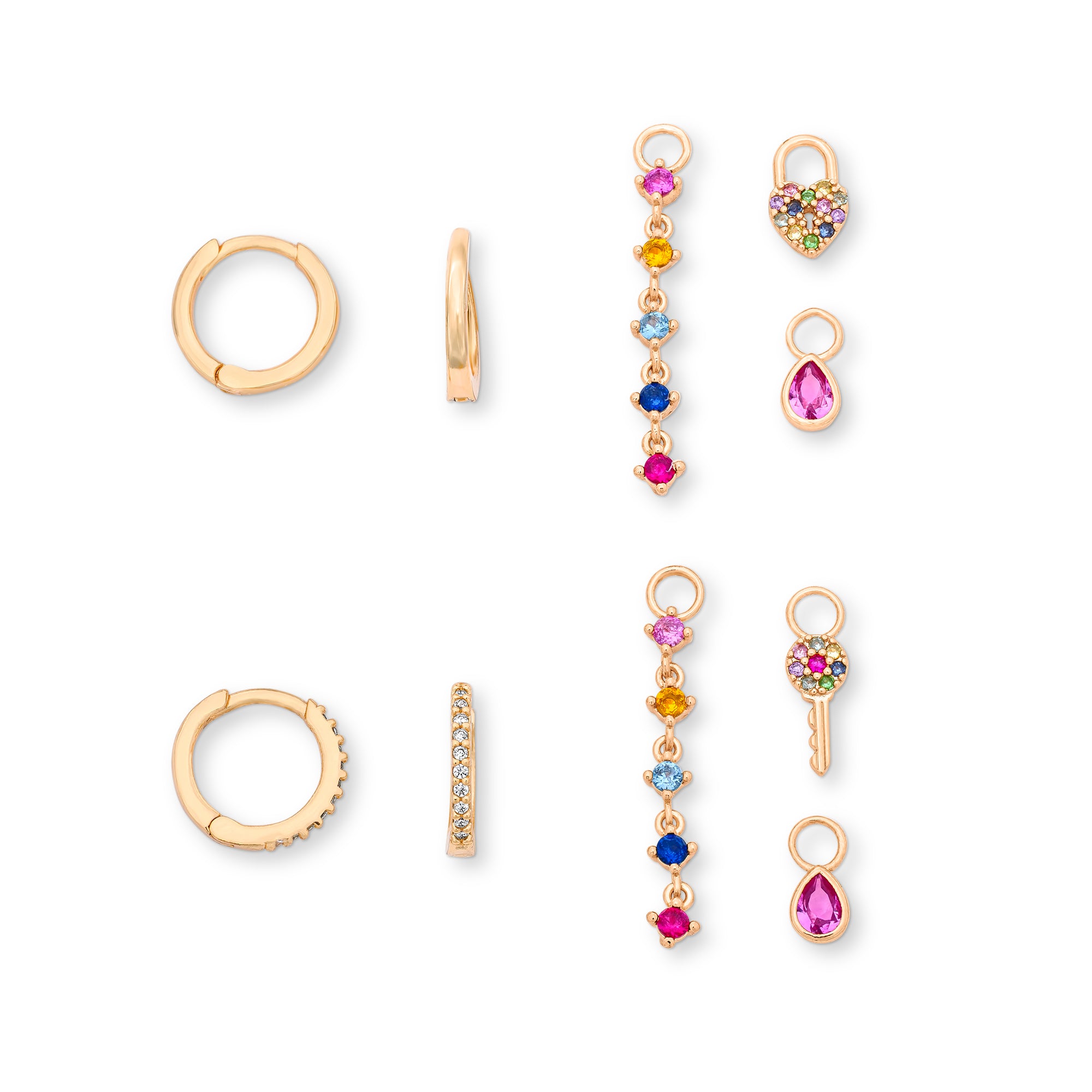 Lock and Heart Huggie Charm Set