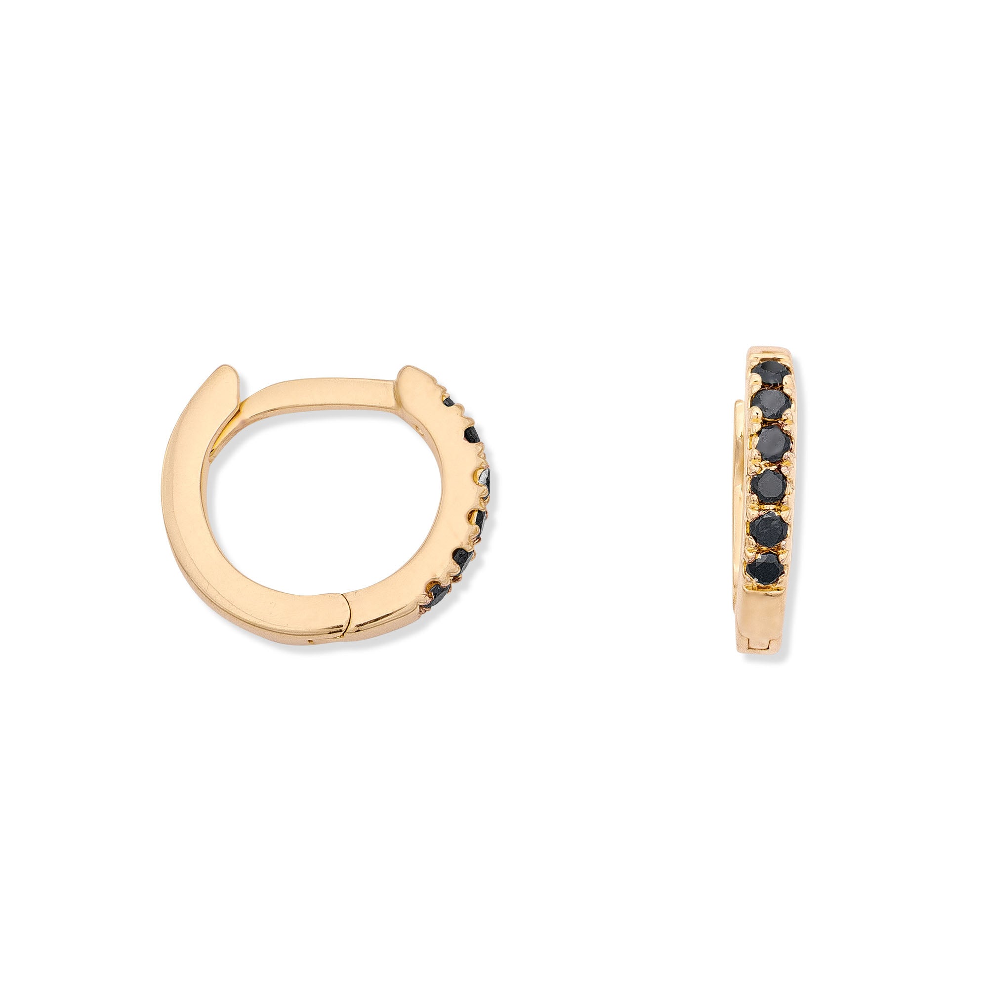 Quiet drama. These minimalist huggies are set with black diamonds for a moody, modern edge.