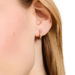 Light up the day or night with Kate Spade's Precious Delights Huggies in Pink Multi. These earrings are made of high polish, 18k gold-plating with pave crystals, and measure 0.51" by 0.12".