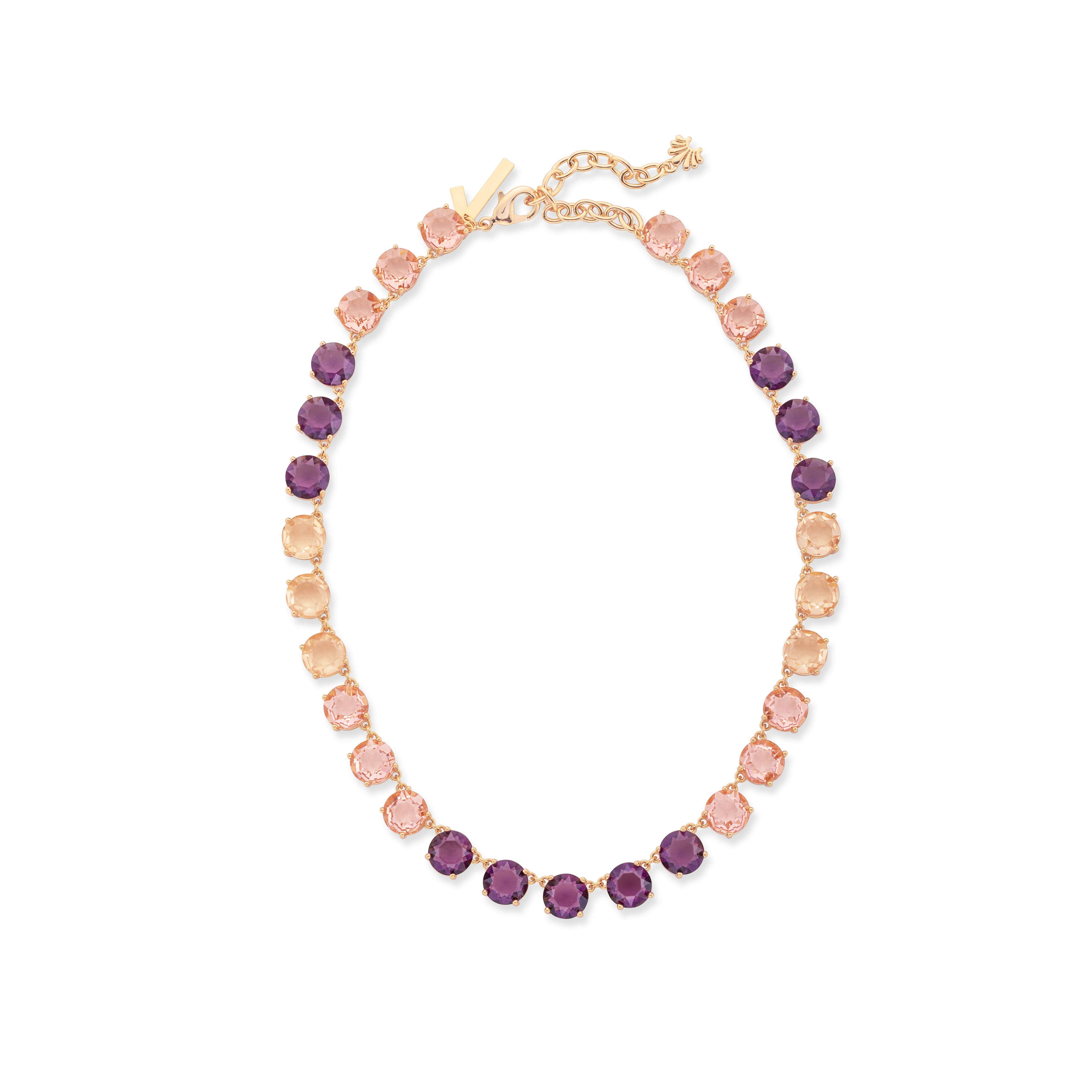 Show off your taste for bold, colorful style in the Candy Crystal Necklace in Eggplant Ombre by Lele Sadoughi. This statement necklace features high polish, 14k gold-plating with warm-toned crystals.