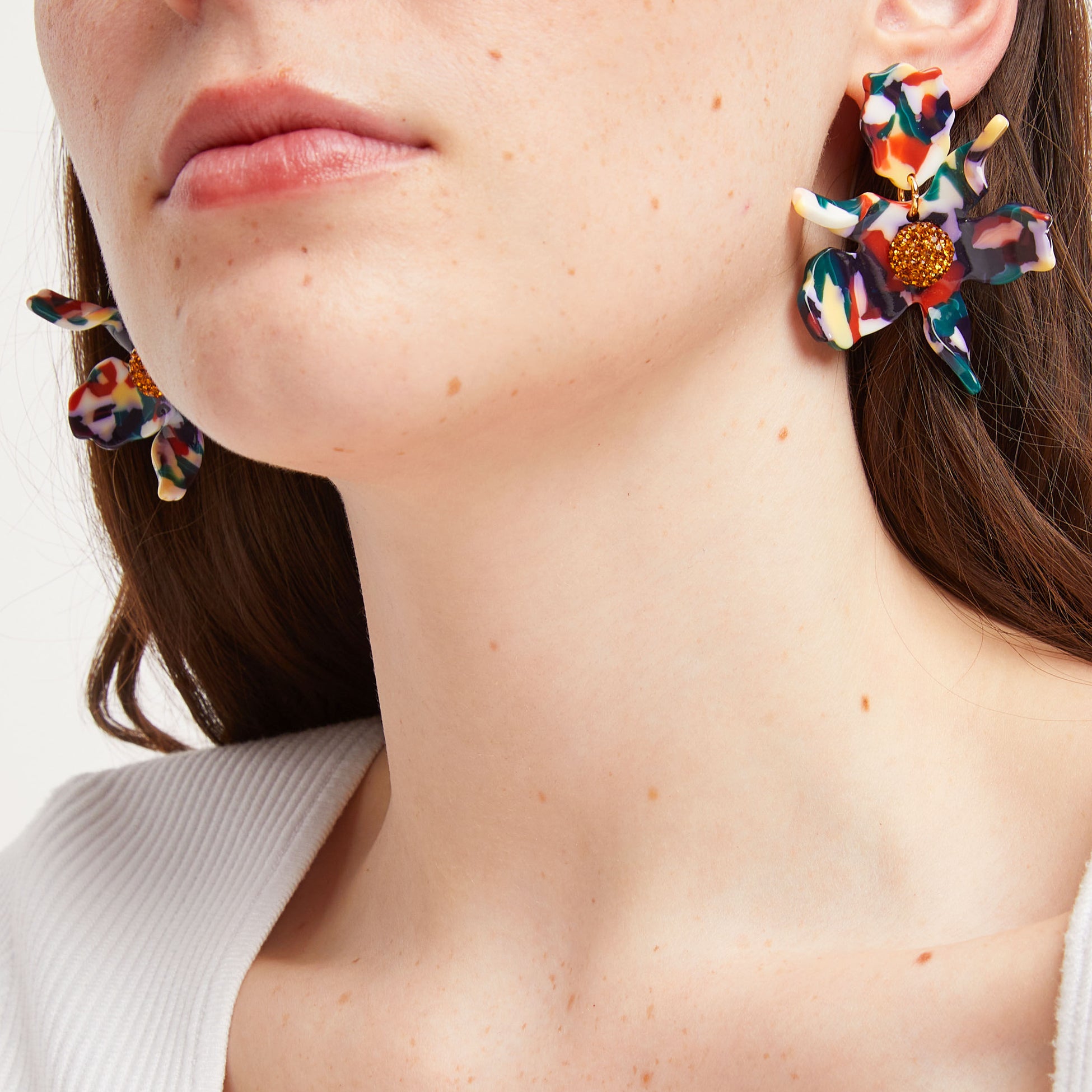 Rocksbox Exclusive Small Crystal Lily Earrings in Harvest Multi