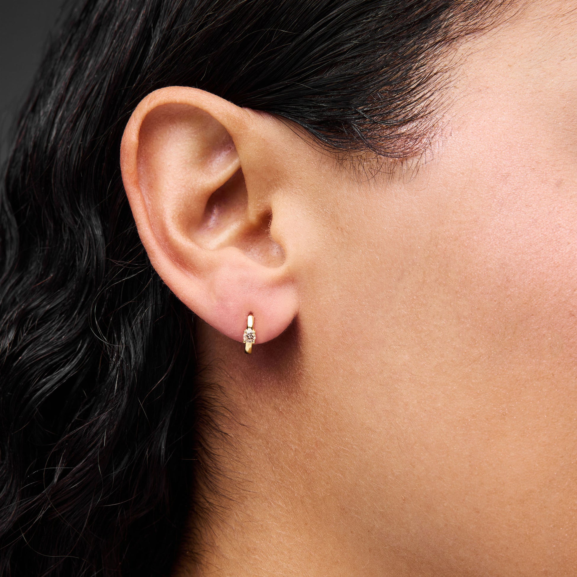 Warm and unexpected. A round brown lab-grown diamond makes this classic huggie feel fresh and elevated.