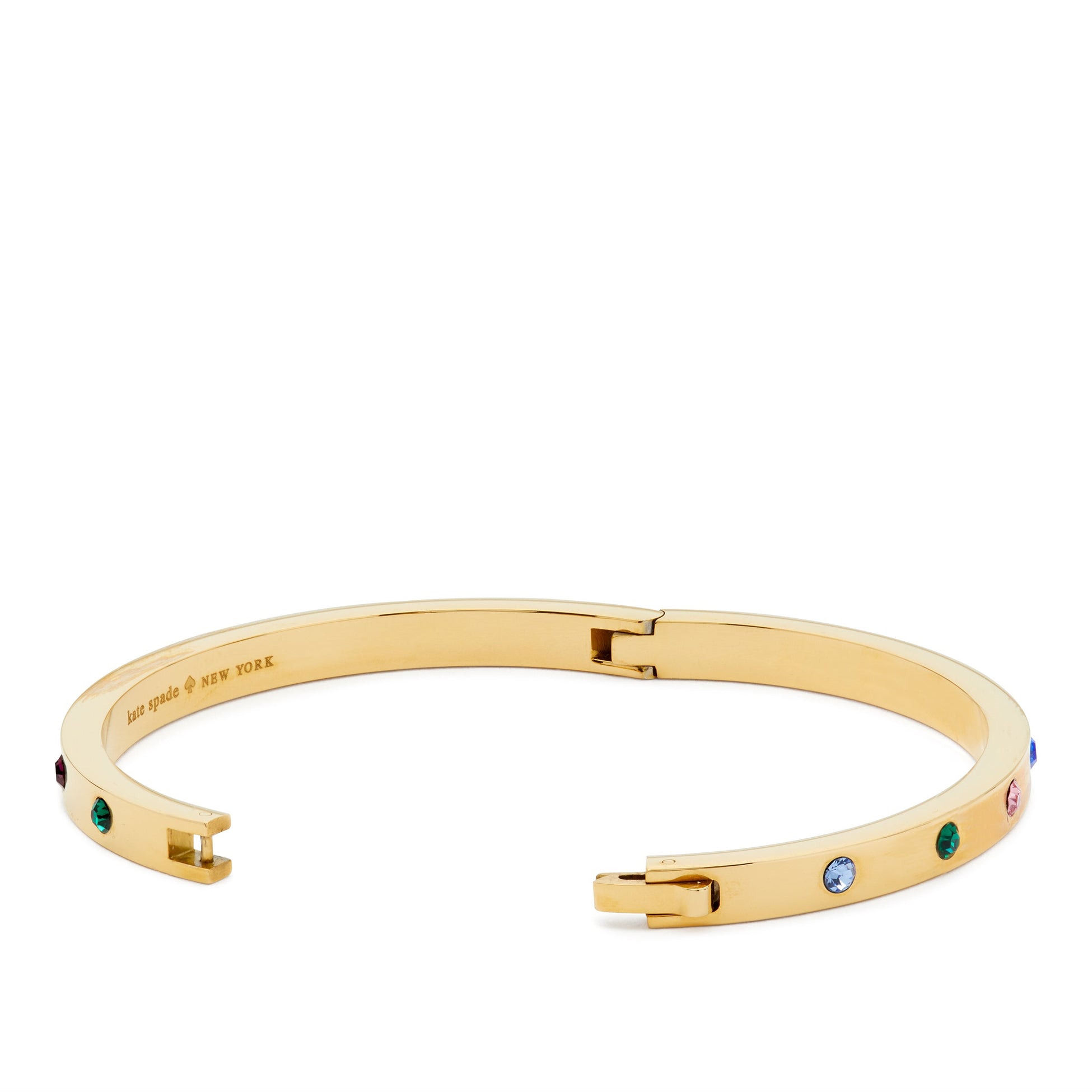 This colorful bangle with a flexible hinged silhouette makes stacking effortless. The bold palette and polished finish will stand out in your wrist stack.