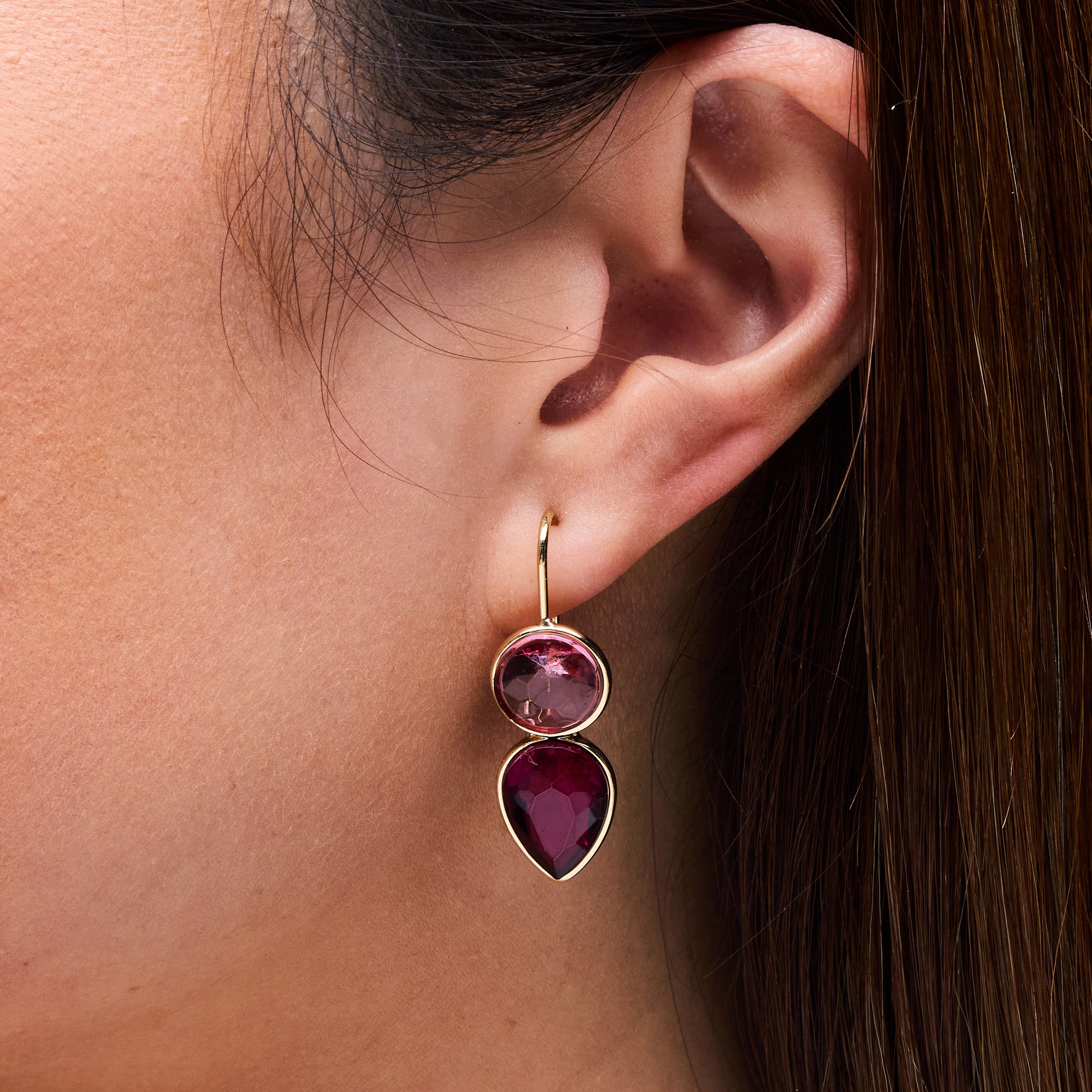 Bold yet feminine. These double-drop earrings bring together high-shine metal and vibrant color for a playful statement. Style them with a sleek pony or soft waves to let the shape do the talking.